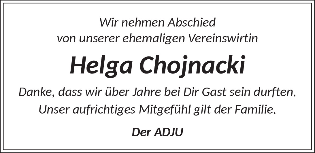 Traueranzeige Helga Chojnacki