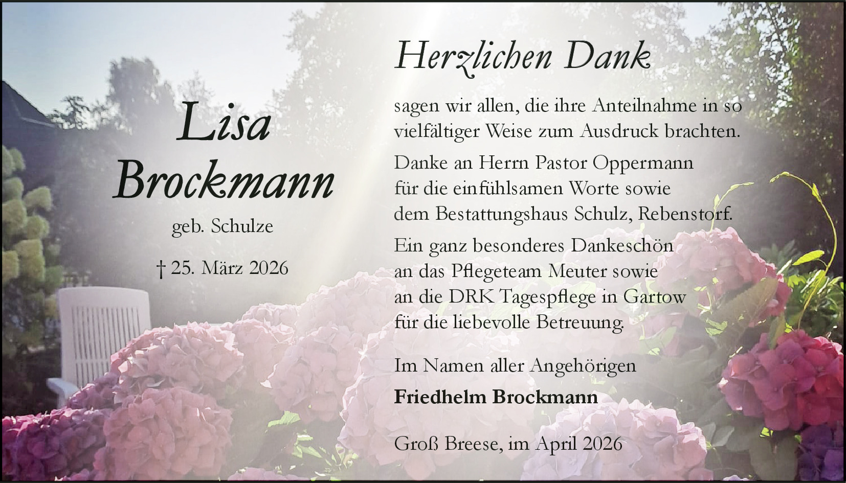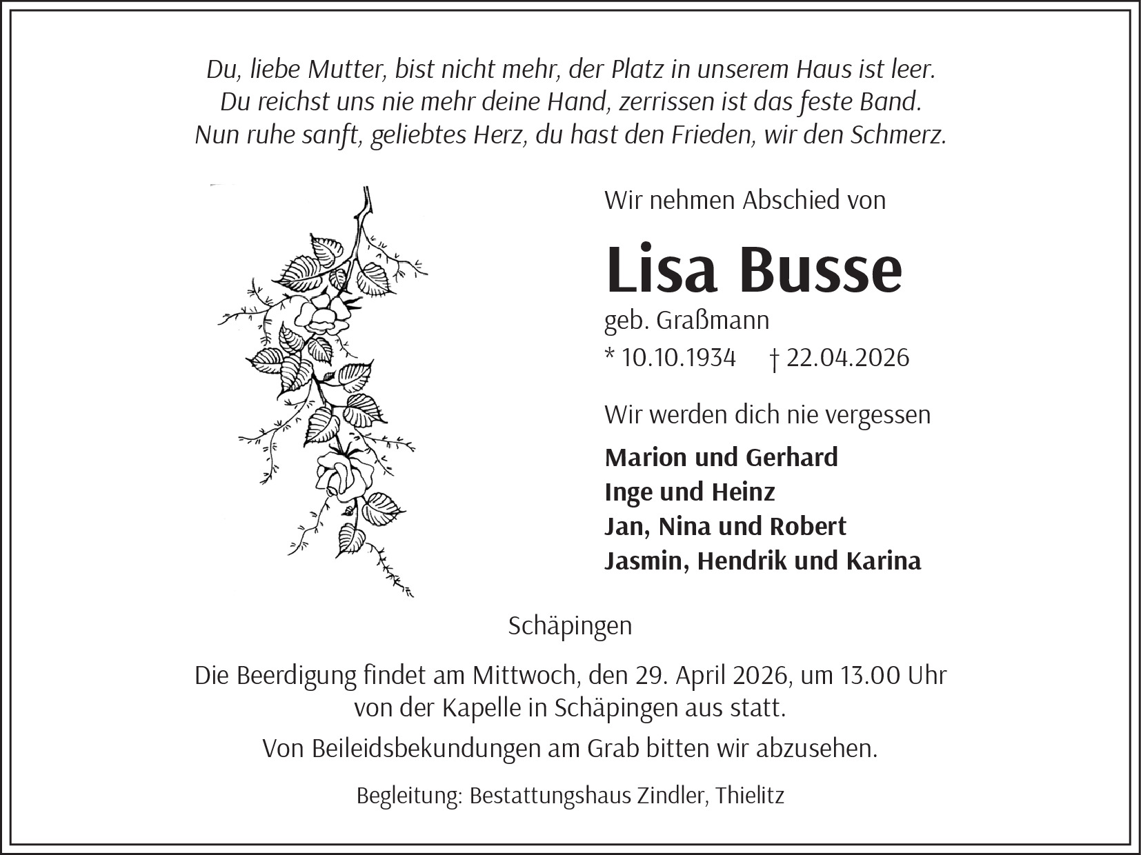 Traueranzeige Ebse Schmidt