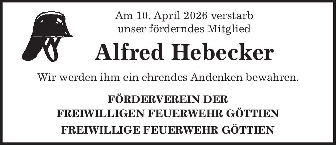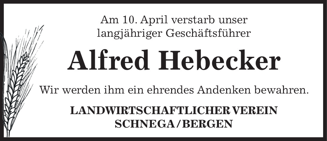 Traueranzeige Alfred Hebecker