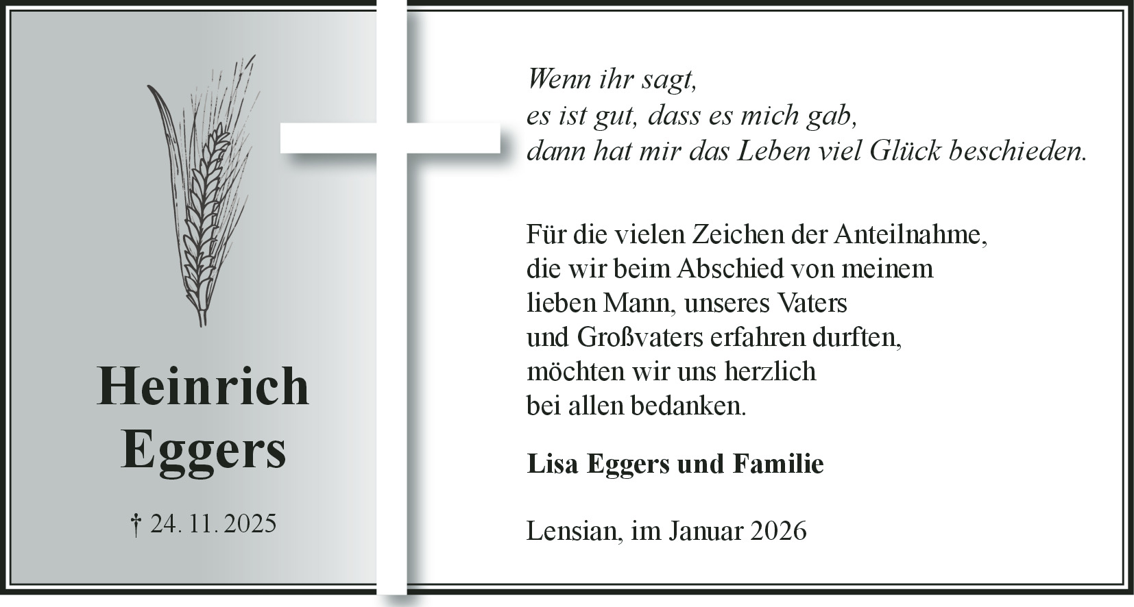 Trauerdankanzeige Heinrich Eggers