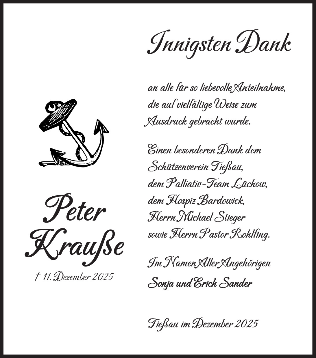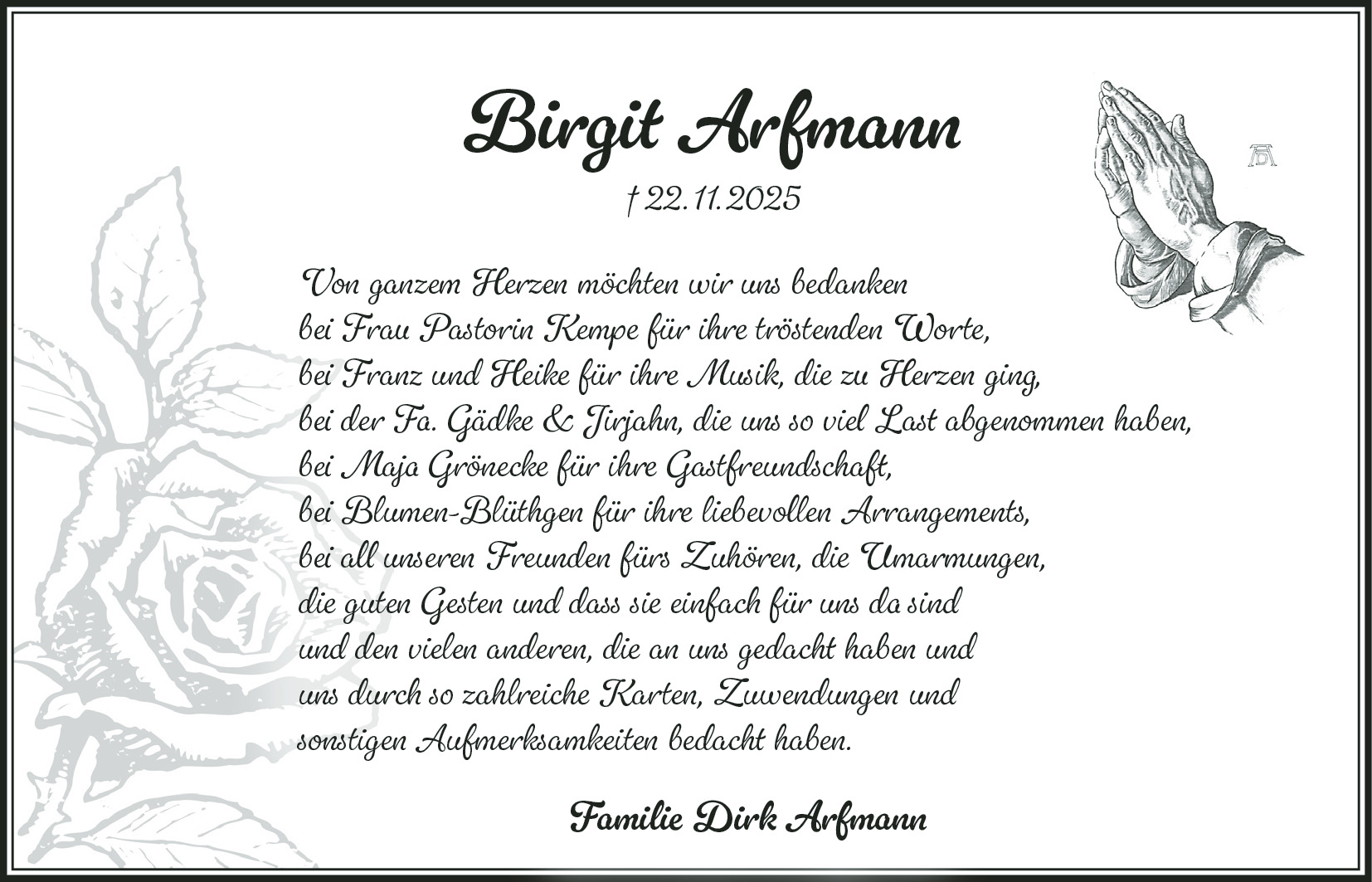 Trauerdankanzeige Ingeborg Hann
