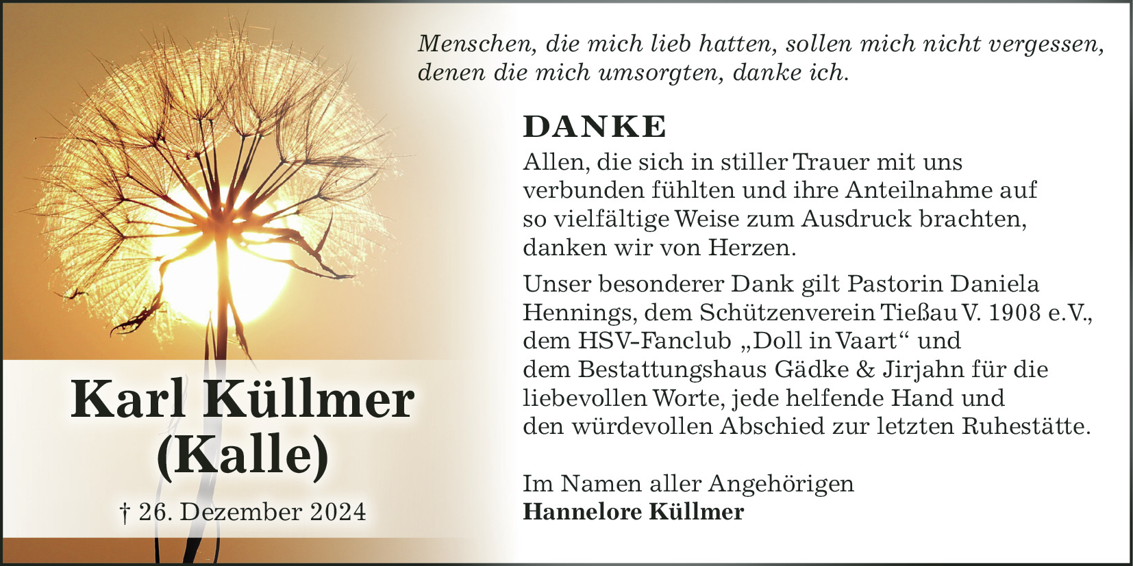 Wolfgang Kriel – Trauerdanksagung