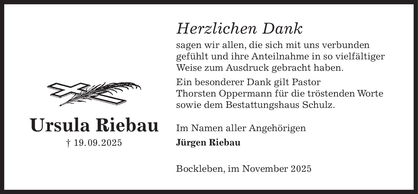 Trauerdankanzeige Ursula Riebau