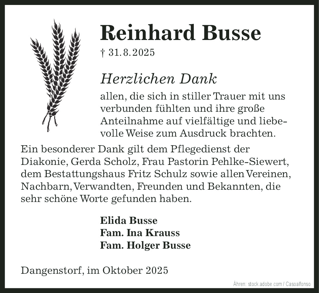 Trauerdank Reinhard Busse