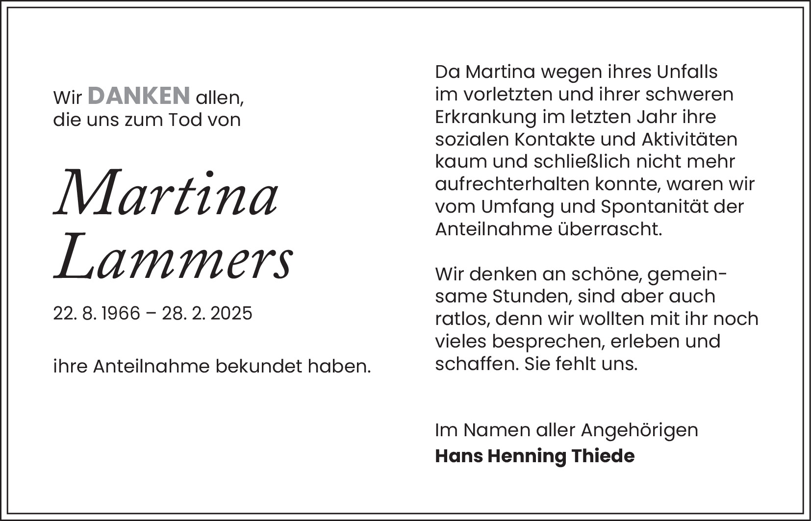 Martina Lammers, Traueranzeige